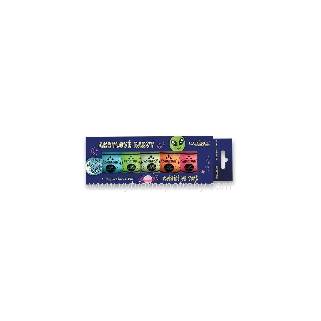 Akrylové barvy s fluorescentní složkou na vodní bázi. Po nasvícení světlem svítí ve tmě. Barvy nejsou plně krycí, nanášejí se ve více vrstvách nebo na již podmalovaný podklad. Lze je použít na nejrůznější materiály a povrchy, jsou netoxické.| Kategorie: | Dekorační |