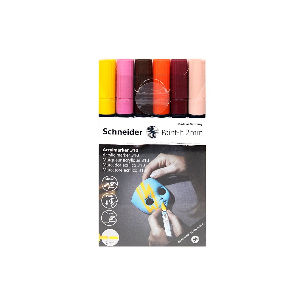 Sada akrylových popisovačů s hrotem o síle 2 mm. Akrylový inkoust je na vodní bázi, rychleschnoucí, bez zápachu, vysoce krycí, lesklý s dobrou přilnavostí na většinu povrchů.| Kategorie: | Akrylové popisovače |