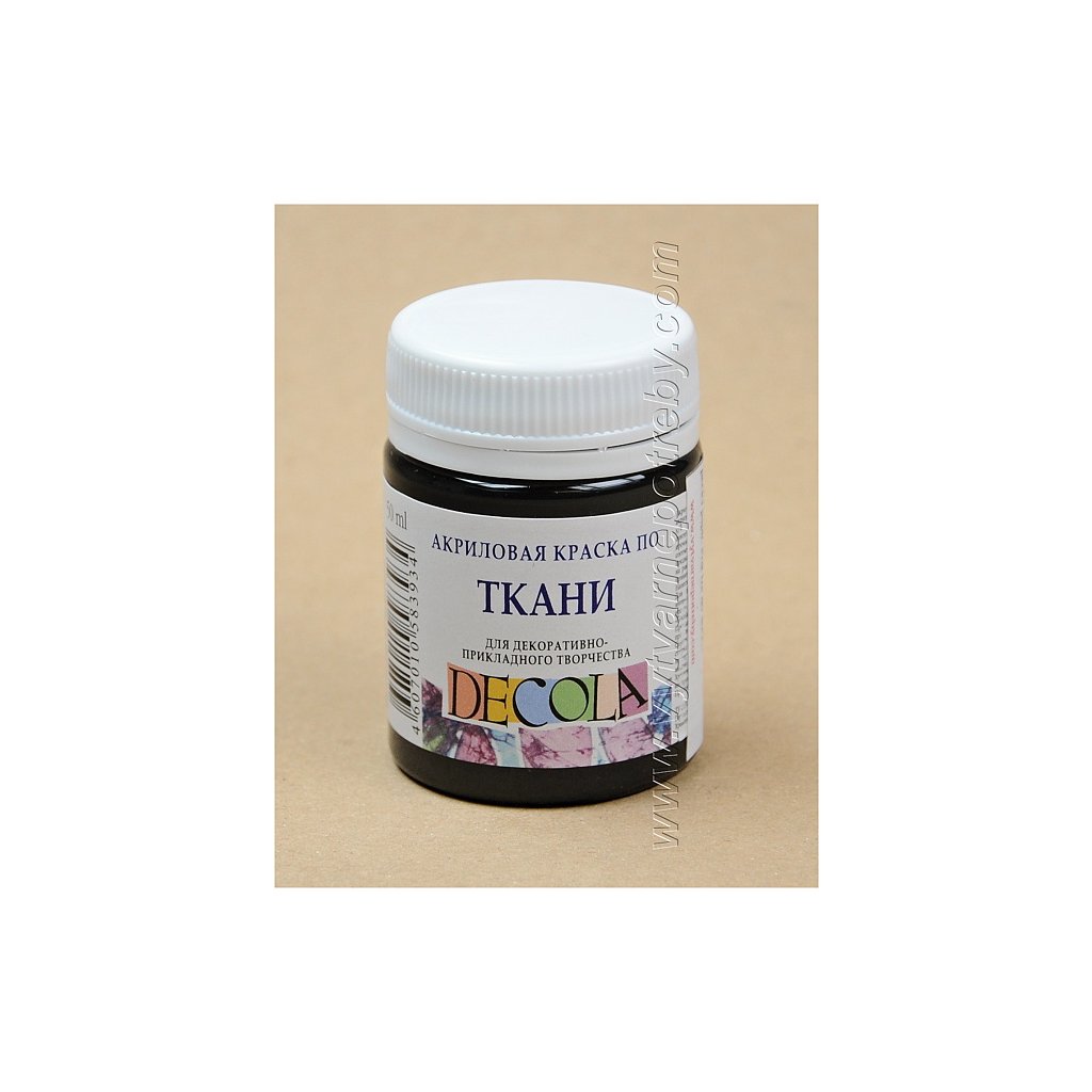 Akrylová barva na světlý i tmavý textil. Barvy DECOLA TEXTILE mají objem 50 ml., jsou navzájem míchatelné, vhodné pro malbu štětcem, válečkem i razítkování. V nabídce je 29 základních , 9 perleťových, 7 fluorescentních a 3 metalické odstíny.| Kategorie: | Barvy na textil |