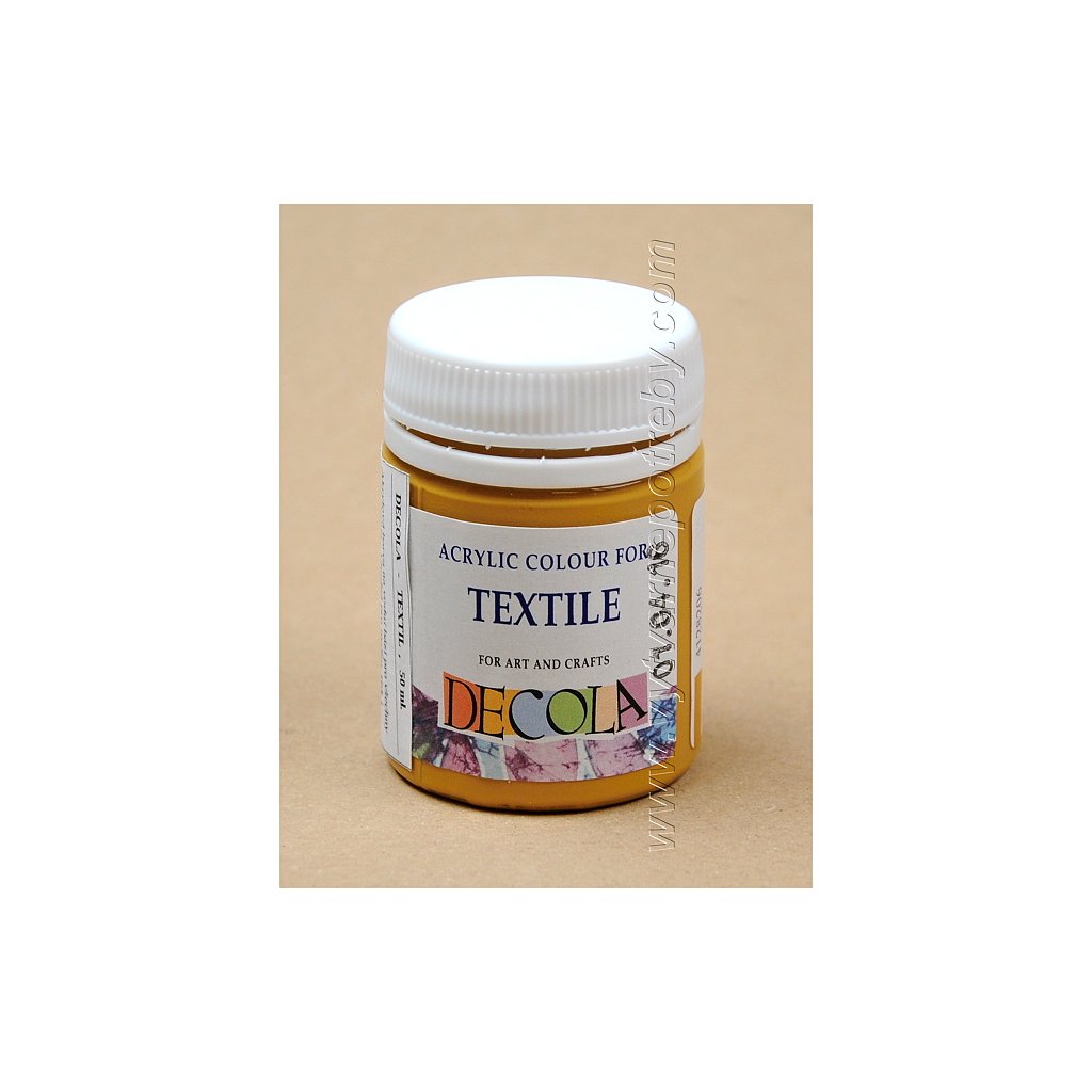 Akrylová barva na světlý i tmavý textil. Barvy DECOLA TEXTILE mají objem 50 ml., jsou navzájem míchatelné, vhodné pro malbu štětcem, válečkem i razítkování. V nabídce je 29 základních , 9 perleťových, 7 fluorescentních a 3 metalické odstíny.| Kategorie: | Akrylové |
