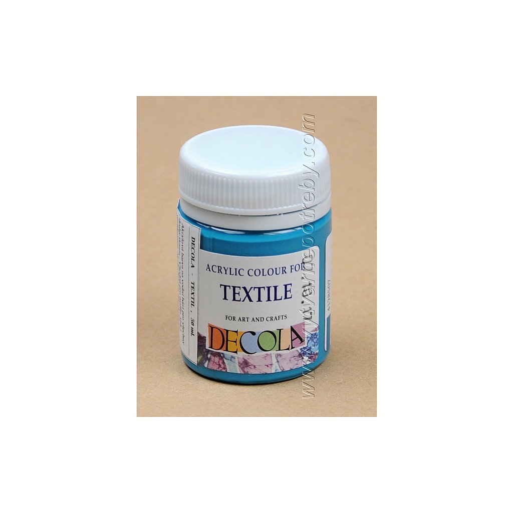 Akrylová barva na světlý i tmavý textil. Barvy DECOLA TEXTILE mají objem 50 ml., jsou navzájem míchatelné, vhodné pro malbu štětcem, válečkem i razítkování. V nabídce je 29 základních , 9 perleťových, 7 fluorescentních a 3 metalické odstíny.| Kategorie: | Akrylové |