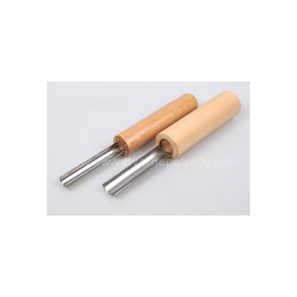 Kovový děrovač bez hrotu pro vyřezávání symetrických otvorů do keramické hlíny , plastelín a polymerových modelovacích hmot .
