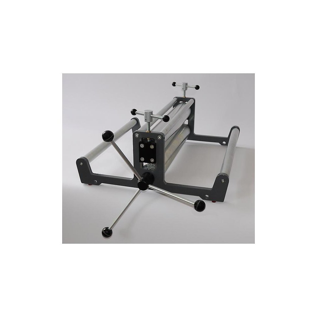 Přítlačné šrouby vrchního válce jsou pro dosažení dostatečného tlaku jemněji zpřevodovány a osazeny do mosazných lůžek. Plynulému průchodu grafické desky po spodním válci napomáhají dva pojezdové válečky na ložiskách.
