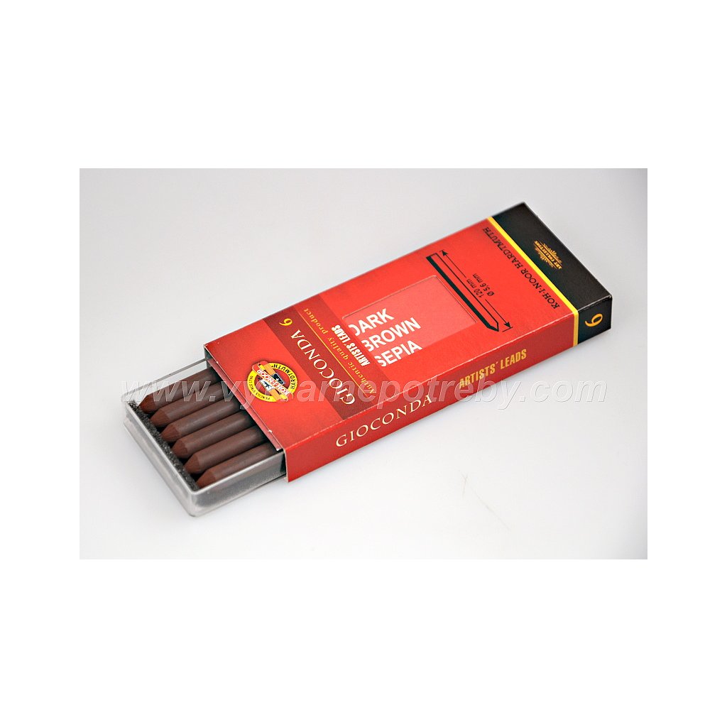 Souprava tmavohnědých uměleckých kříd, kulatých o průměru 5,6 mm.