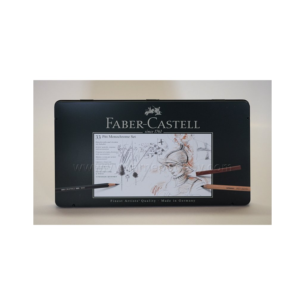 Speciální sada pro profesionální umělce. Sada obsahuje: PITT MONOCHROM grafitové tužky, PITT pastely, PITT MONOCHROME křídy, grafitové tužky,lisovaný a přirodní uhel, stěrací pryž. Plechová krabička.