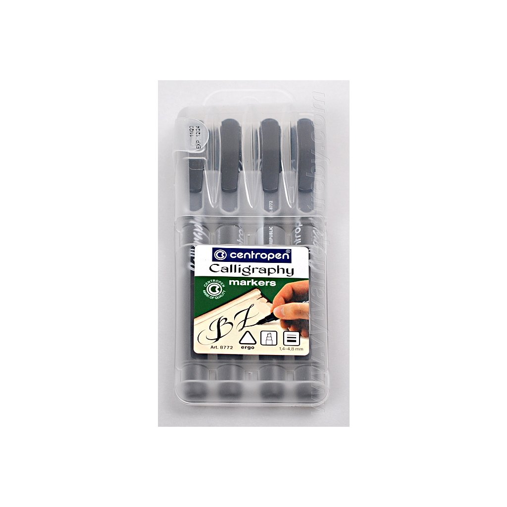 Sada čtyř zkosených popisovačů s černým inkoustem pro začínající zájemce o kaligrafické písmo.Síla hrotů - 1,4 - 2,5 - 3,6 - 4,8 mm| Kategorie: | Popisovače |