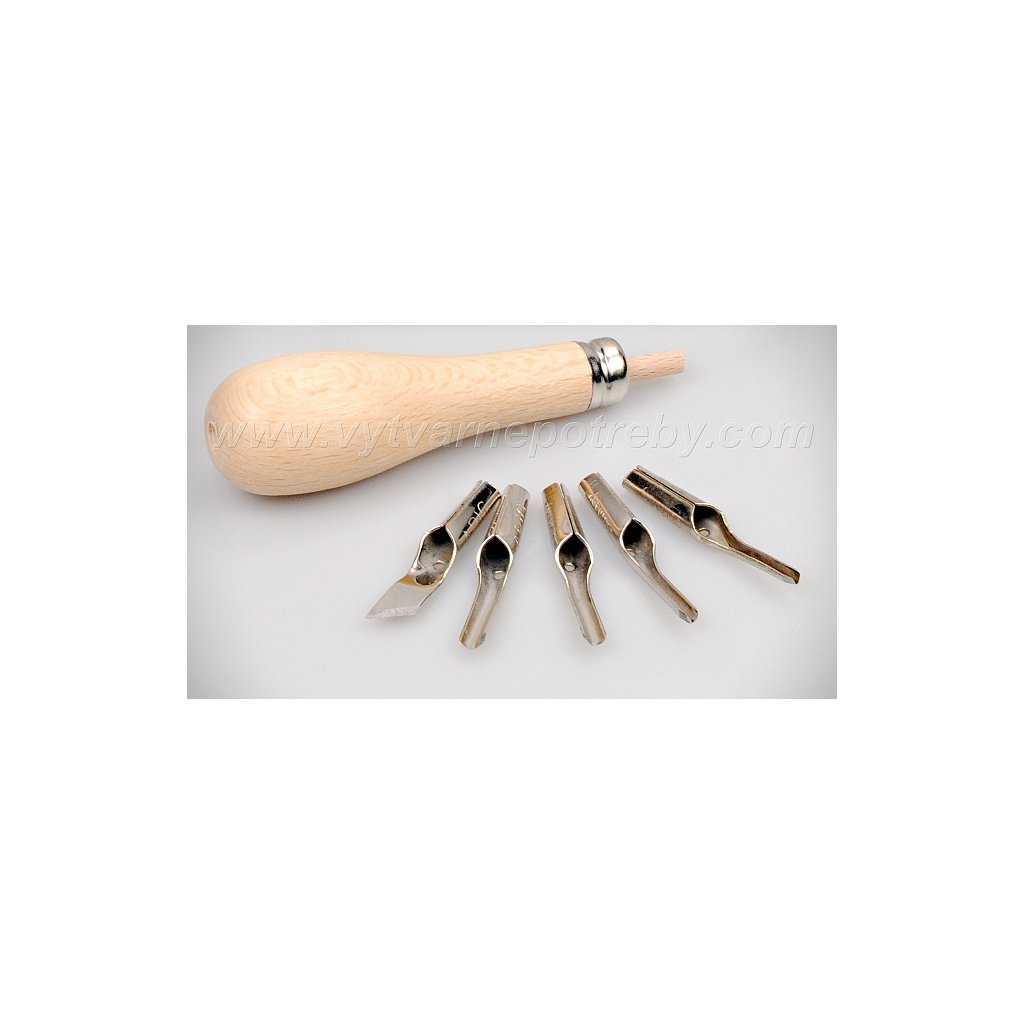 Sada pěti kusů rydel na linoryt s dřevěným držátkem pro začátečníky.