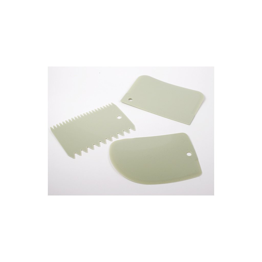 Sada tří kusů plastových stěrek je vhodná k uhlazování, zdrsňování a dekorování keramické hlíny a různých hmot. Sadu lze využít i při točení na hrnčířském kruhu.
