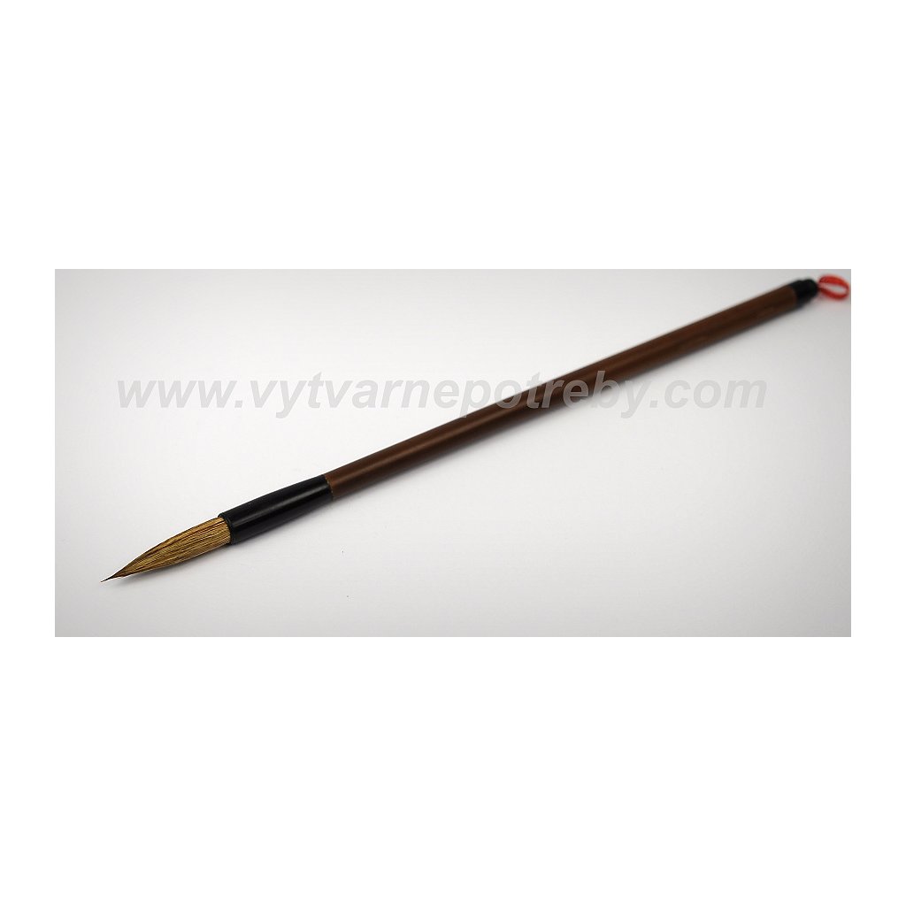 Kaligrafický a akvarelový štětec s přírodním vlasem , hlazeným dřevěným držátkem zakončeným nezbytným textilním očkem pro vykapávání vymytých štětců.