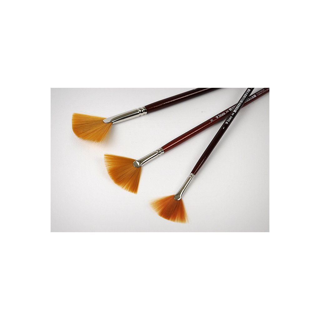 Jemný vějířový štětec z kvalitního syntetického vlákna pro malbu olejovými a akvarelovými barvami. Vějířové štětce se používají k dosažení hladkých barevných přechodů a linií v malbě. Lze je využít pro různé efekty a uplatní se i jako štětce kosmetické .